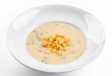 Шампиньоны, лук, сливки, крутоны