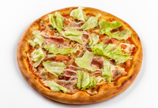 Томатный соус, моцарелла, филе куриное, бекон, томат, соус цезарь, айсберг